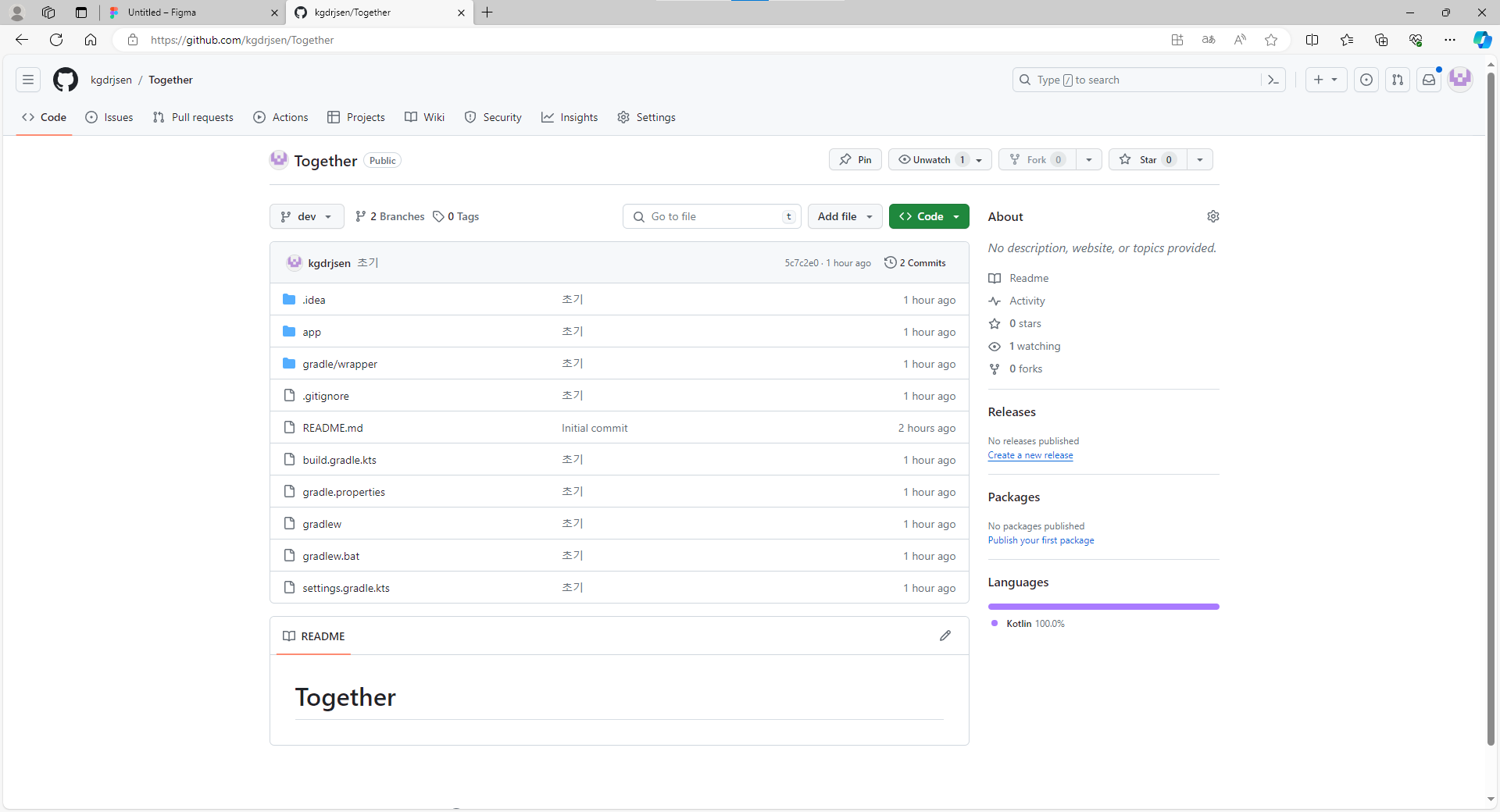 처음에 다른 분이 깃허브를 만들고 초대를 주셨는데...제일 최신 버전인 헷지호그? 버전이라 나머지 사람들이 안드로이드 스튜디오로 열지 못하여 일단 내가 만들어서 dev 브랜치까지 만들었다. 이후에 다들 String값, color값 등 공통적인 것들을 따로 빼서 파일로 만들고 이것들을 호출하는 식으로 하기로 했다.