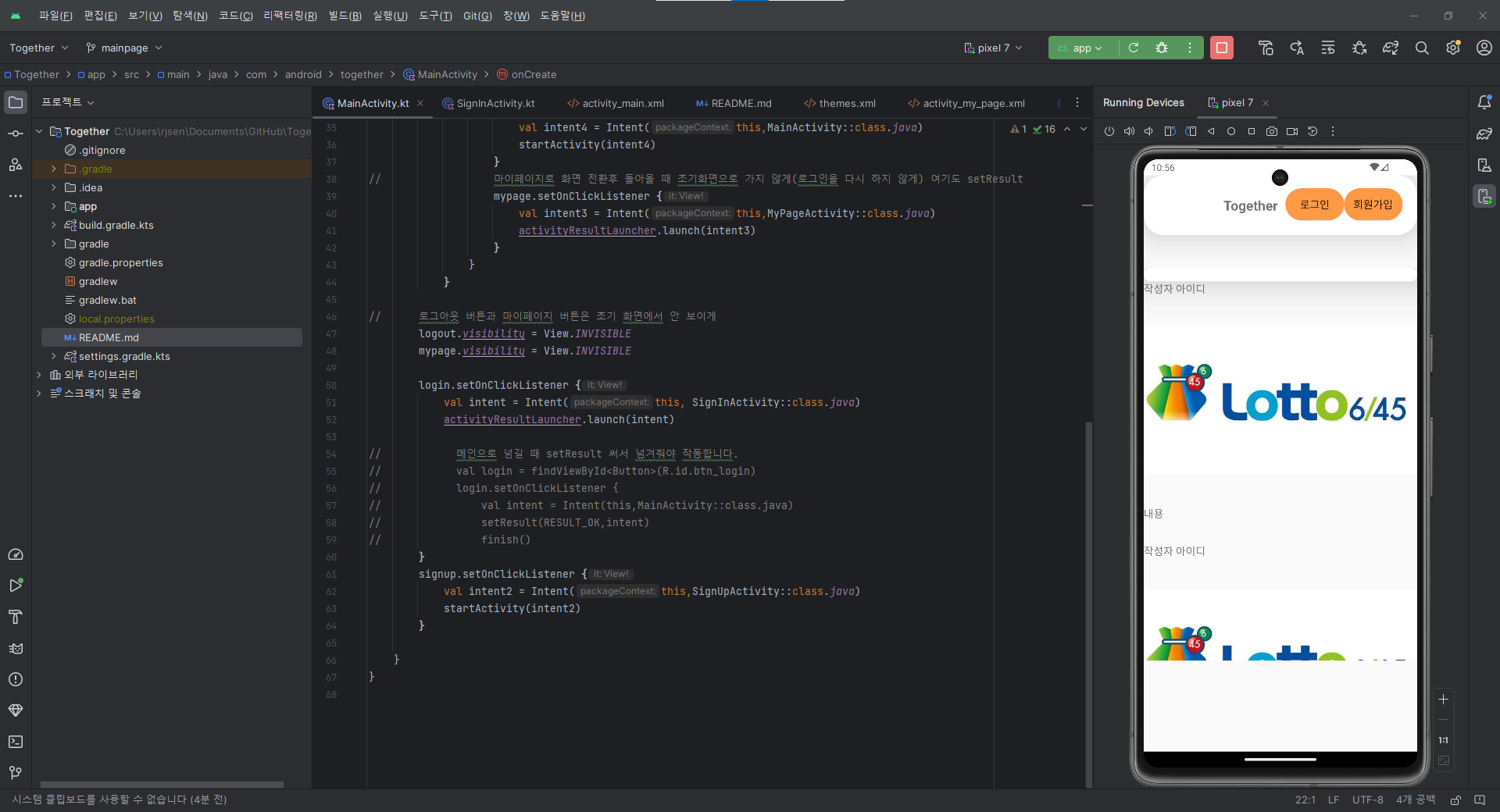 이제 여기서 로그인 화면으로 넘어가서 로그인이 되서 다시 메인이 호출되야 하니 이걸 저번주에 했던 개인 과제에서 쓴
